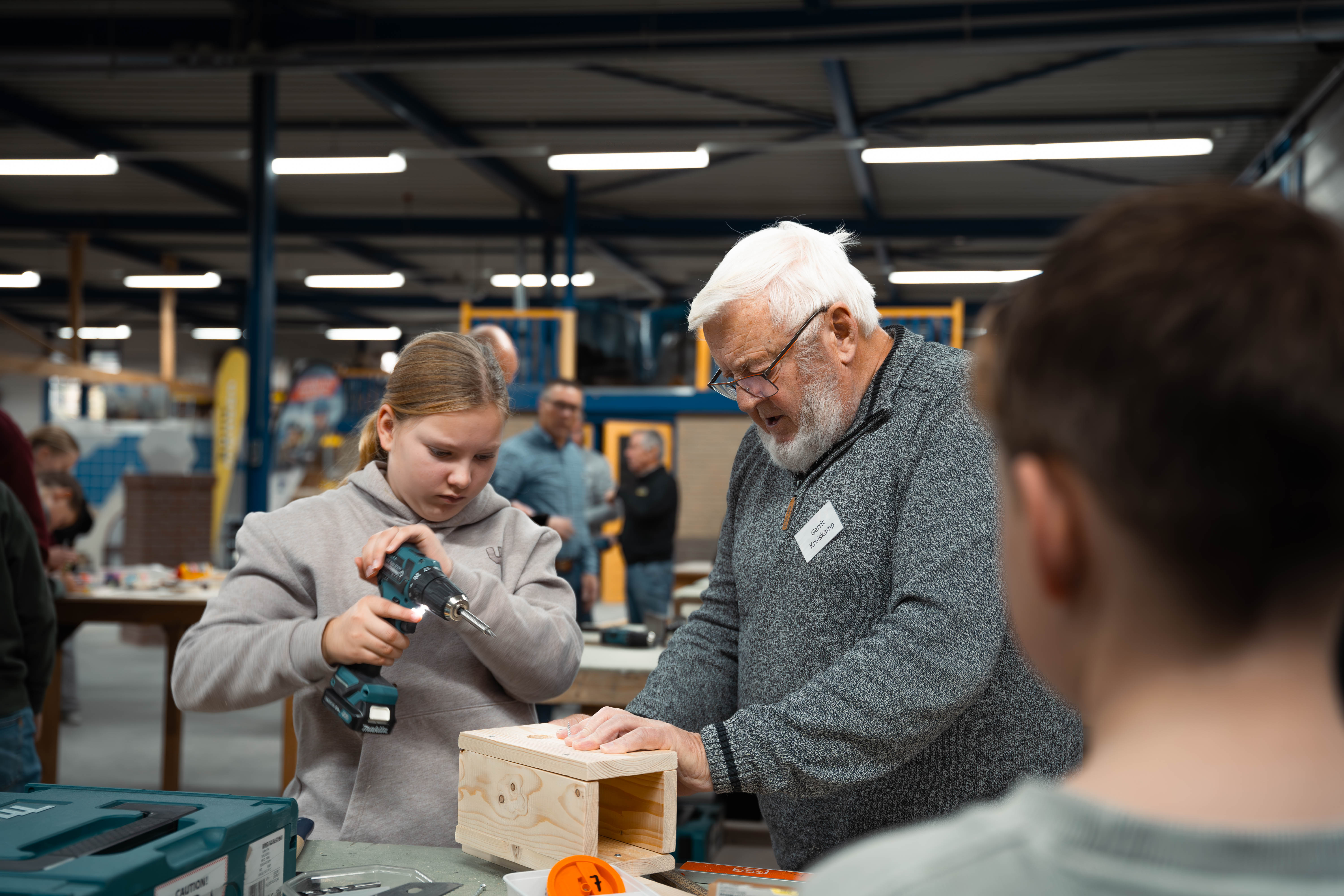 ‘’Het is prachtig om te zien hoe zij hun kennisdoorgeven,’’ vertelt Robert Herman, directeur bij Bouwmensen. ‘’Ze zijn onzetechniekopa’s. We halen ze letterlijk achter de geraniums vandaan en ze vindenhet geweldig om met de leerlingen te werken.’’